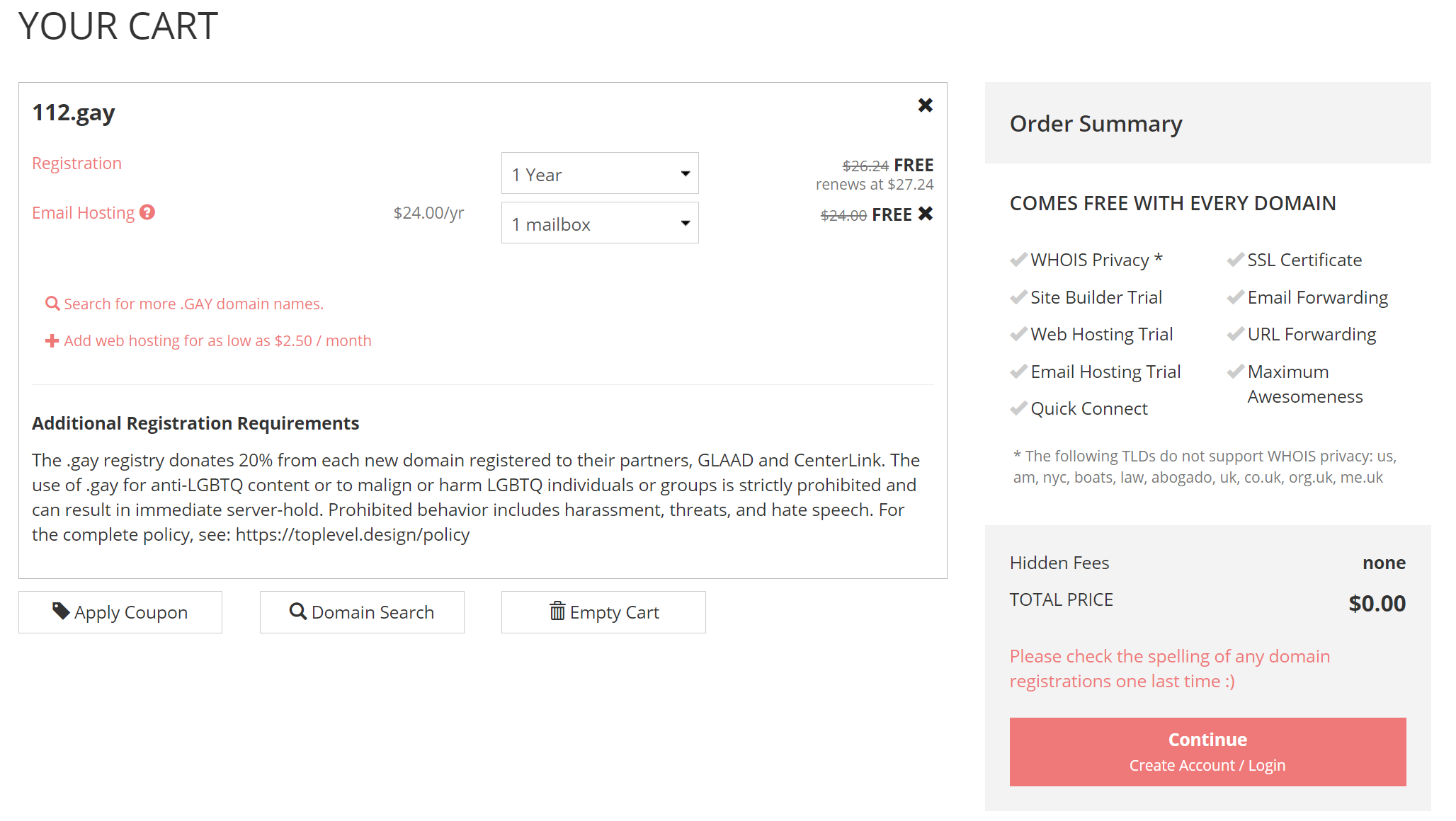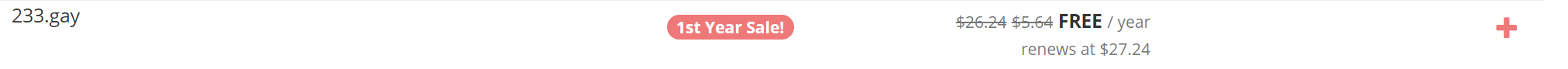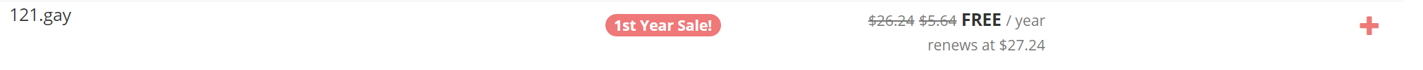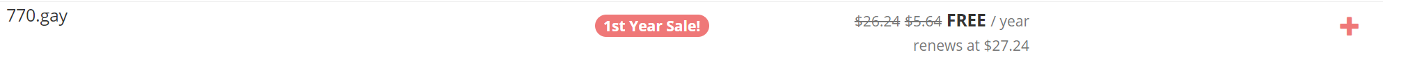 gay域名在去年开放注册了有人知道吗?我想应该没有多少吧,国内有运营资质的厂商也没几个,这意味着什么?就是注册量少之又少,为了推广gay域名,porkbun推出了gay域名首年免费的活动,同时,porkbun又可以免费搭建WordPress博客,这一下,直接免费一套了! 再者,注册量小,意味着可能注册到好域名短域名,未来可能有升值的空间。 截止北京时间2021年9月2日21:16,我测试了很多三位数的都可以注册,像121,233,770等都是可以免费注册的,所以感兴趣的小伙伴需要赶紧的!